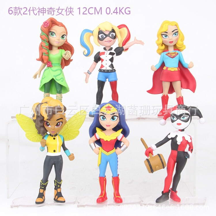 スーパーヒーロー美少女6種類のq版の神奇女侠のスーパーマンの小さい醜い女の手は人形のシーンの置物をします。
