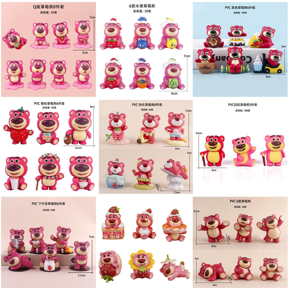 6 ストロベリーベアフィギュアデザートパーティーシリーズインターネットセレブトレンディガシャポン人形お尻クマ動物ケーキオーナメント