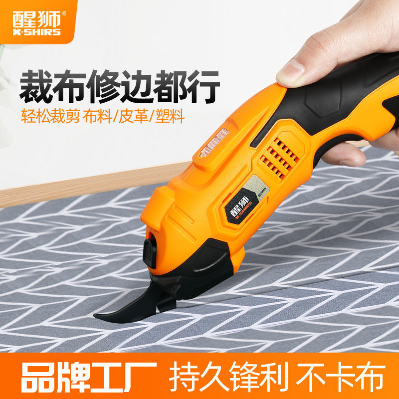 目を覚ますライオンの電気はさみは布を裁断します。