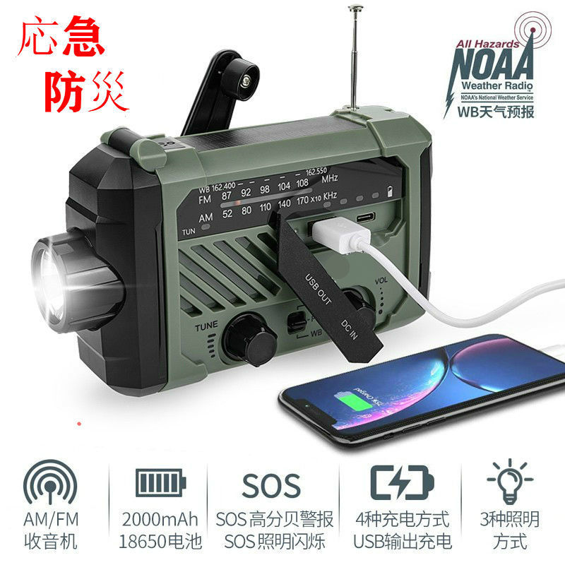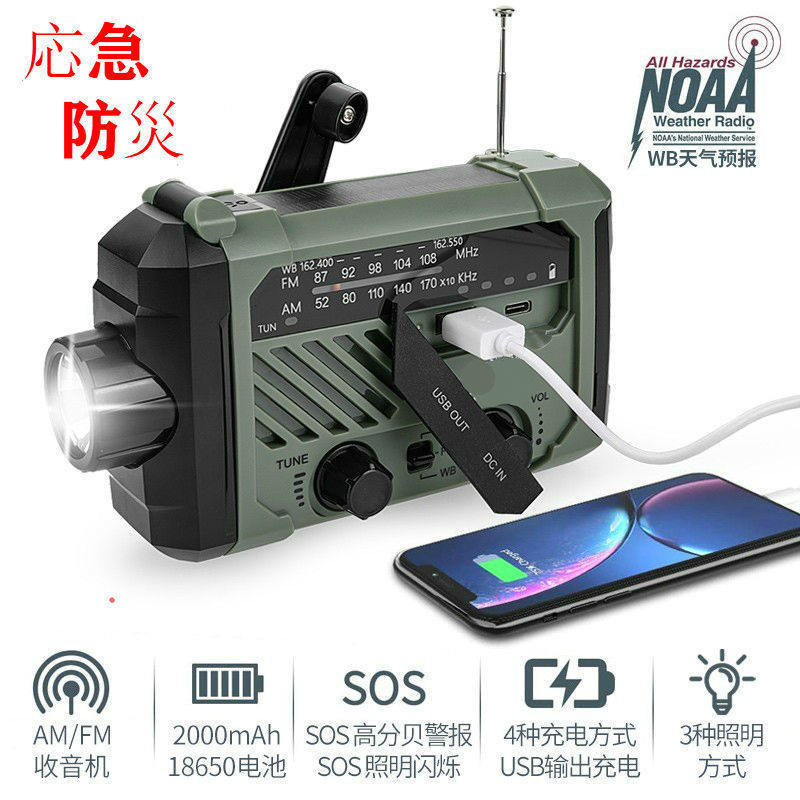 携帯戦備緊急ラジオ防災多機能懐中電灯手回し発電携帯電話充電ソーラー照明