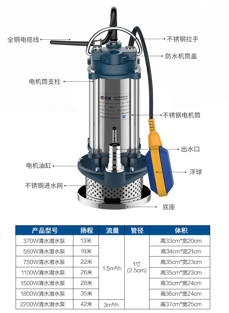 臣源潜水ポンプ220v家庭用自吸高揚程ポンプ農業用排水ポンプ灌漑汚水ポンプポンプ