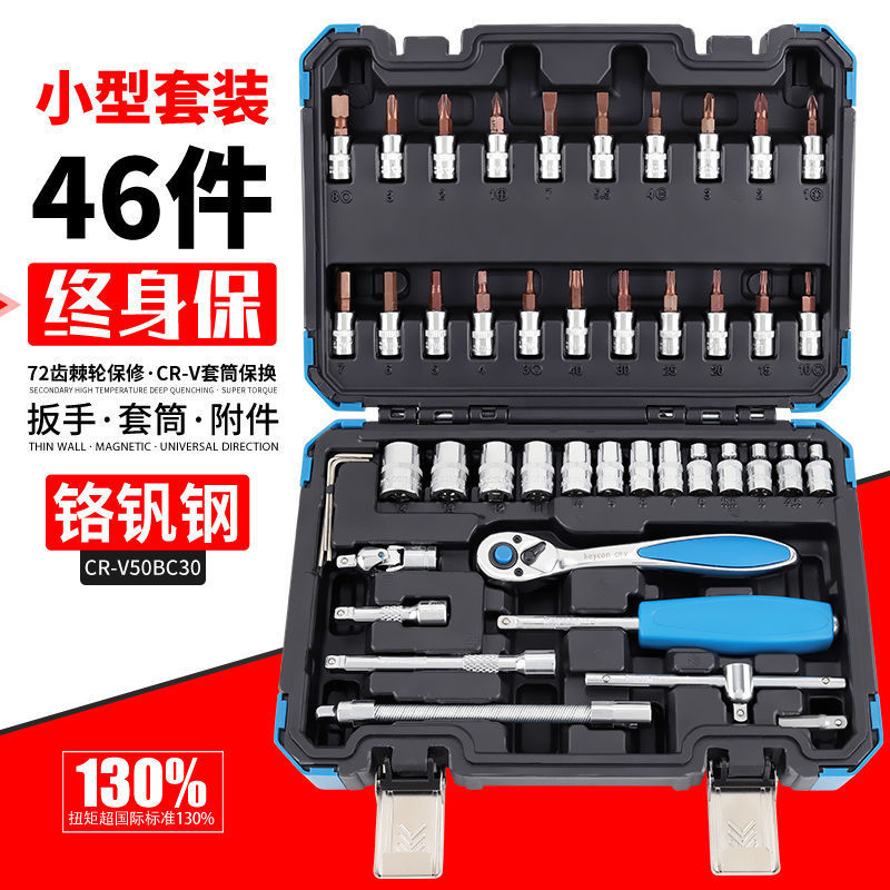 46ピース6角ソケットレンチツールセット板金内装小さなクイックラチェットポスト多机能蒸気修理セット