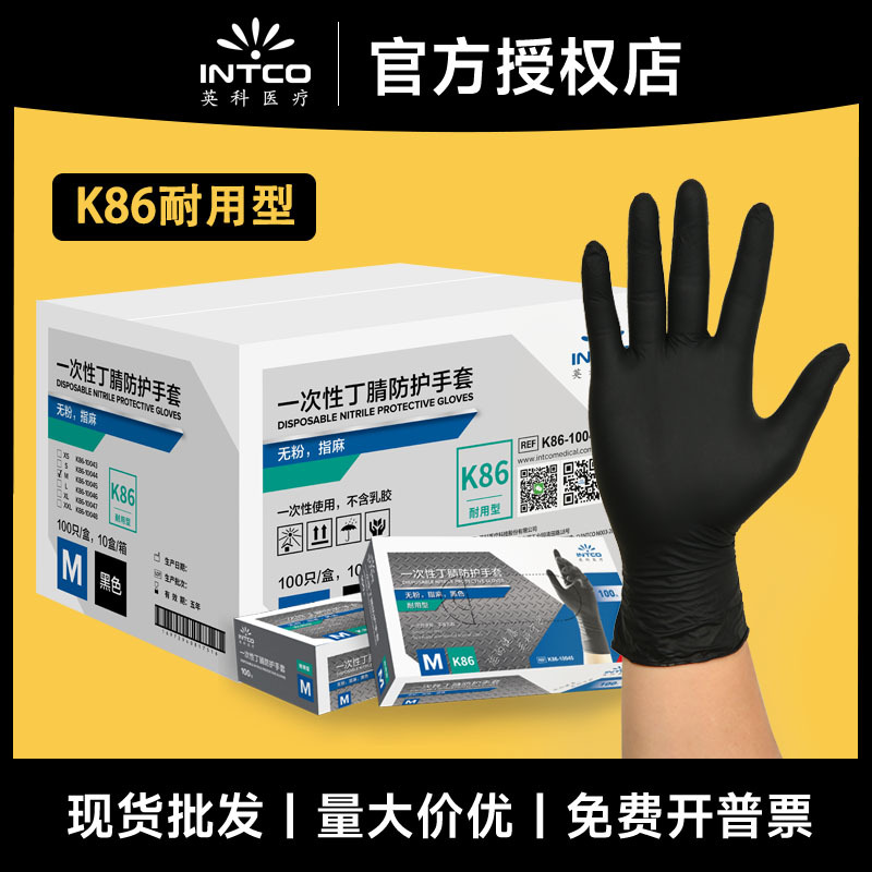 英科使い捨てニトリル手袋厨房専用黒色丁晴防護防水pvc食品級家事皿洗い