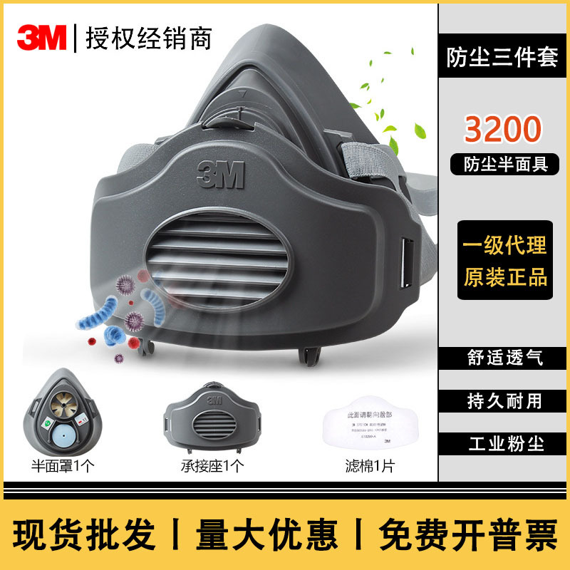 3mマスクフィルター式防塵マスク粉塵防止セメント磨き炭鉱工場内装マスク3m 3200