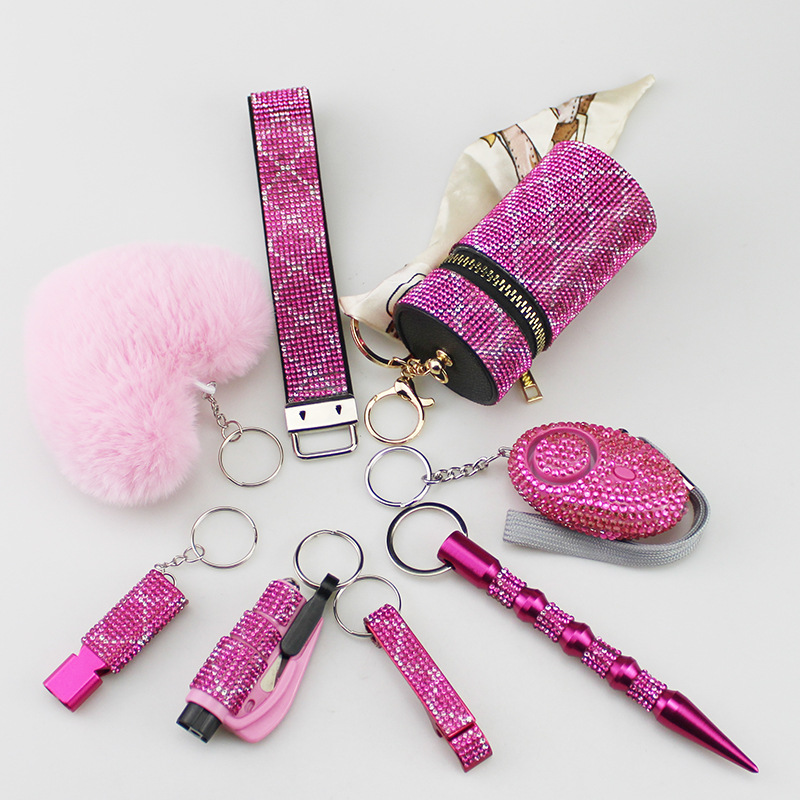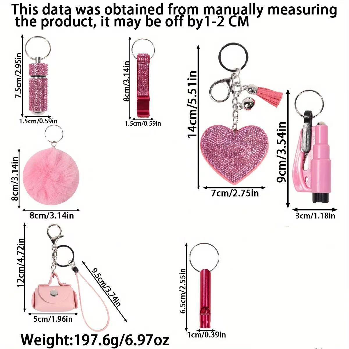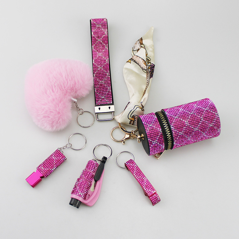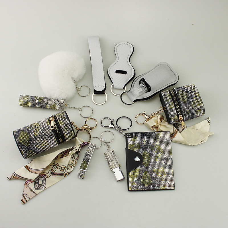 Amazonクロスボーダー人気ダイヤモンド付きリストストラップアラーム口紅バッグラブハート8点キーホルダーペンダントセット