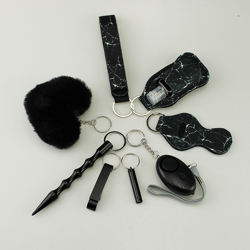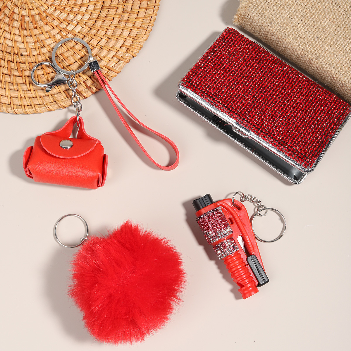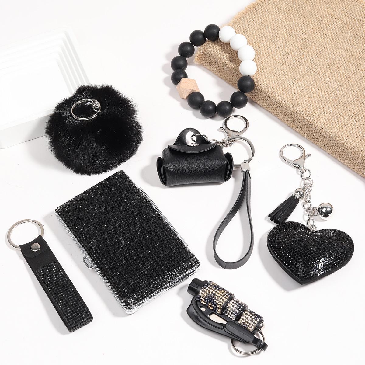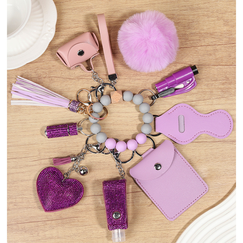 Amazonクロスボーダー人気ダイヤモンド付きリストストラップアラーム口紅バッグラブハート8点キーホルダーペンダントセット