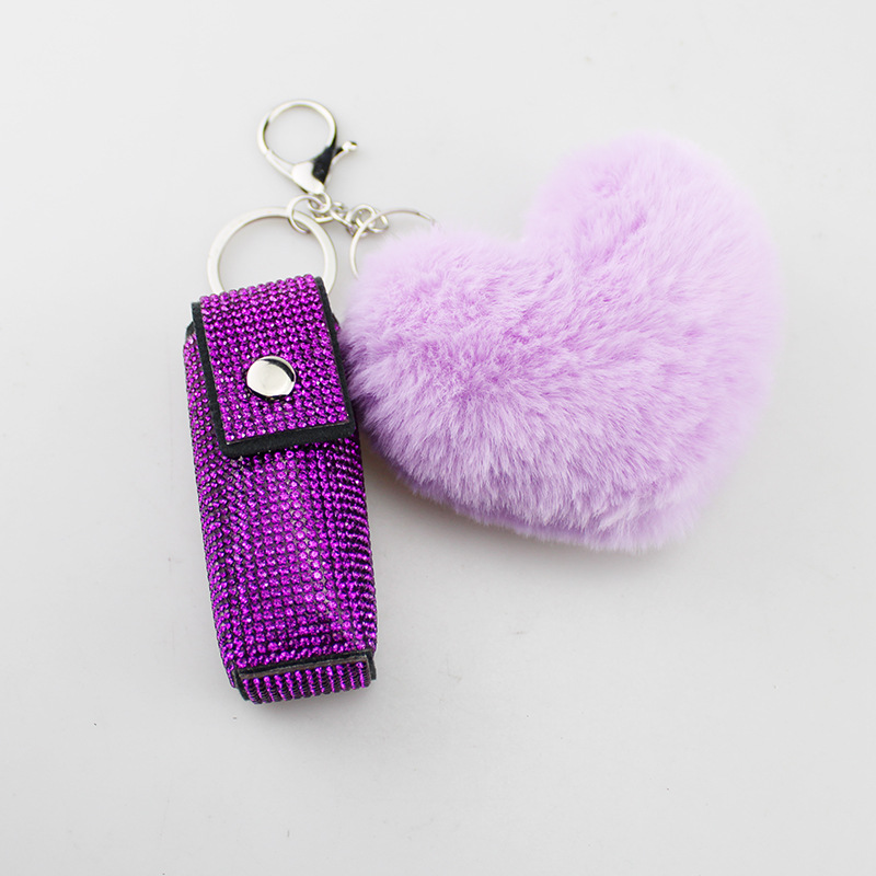 Amazon レザーダイヤモンドキーホルダー口紅レザーケース PU レザーラブファーボールペンダント