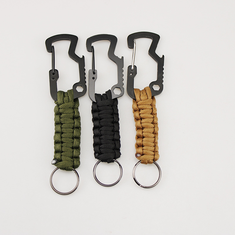 アウトドアサバイバルバックルキーホルダーパラコード織り多機能小型サメ栓抜きカラビナステンレスリング