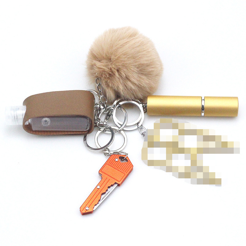 Amazonの人気の女性用防狼アラーム8点セットキーホルダーファッション香水ボトルウィンドウブレーカーバッグペンダント