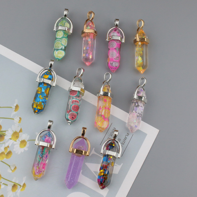 新しいアマゾンのクロスボーダー樹脂は天然石の六角柱をまねて水晶の柱の弾丸のネックレスのペンダントの部品をまねます。
