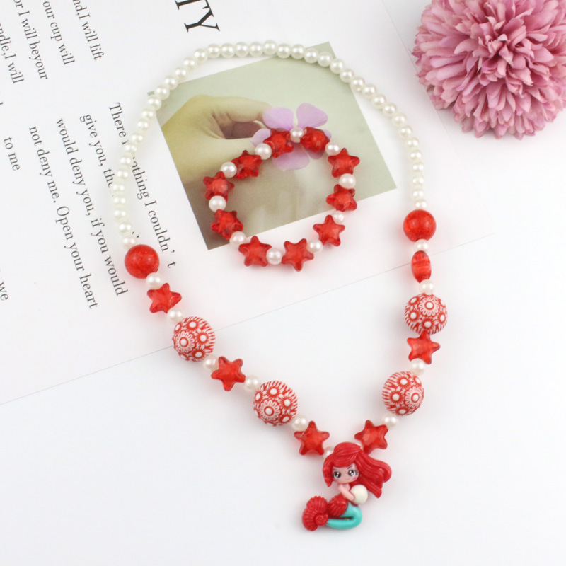 工場供樹脂アクリルマーメイドペンダント子供ピンクネックレス星ブレスレットセットビーズ飾り