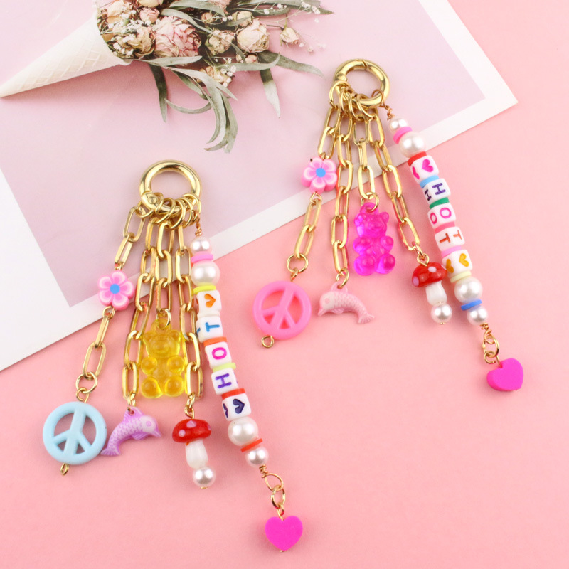外国貿易のアルファベットの玉hot数珠瑠璃のキノコの鍵はアクリルのカラーの熊の柔らかい陶を掛けます。