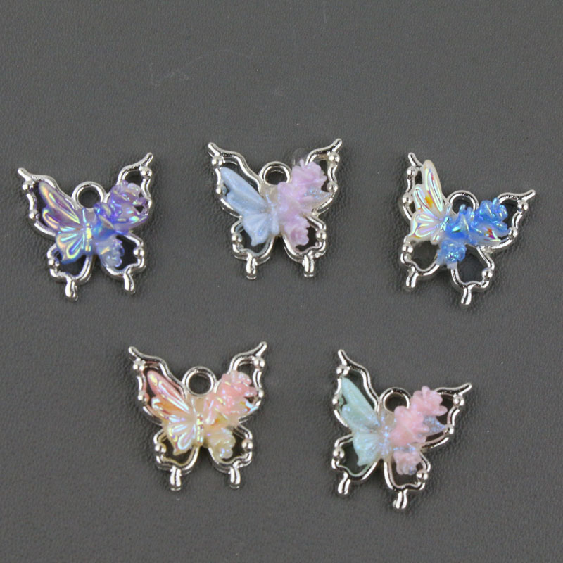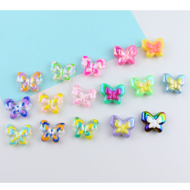 アクリル彩色蝶珠マカロン二色蝶直孔珠携帯チェーンブレスレットビーズ装飾部品