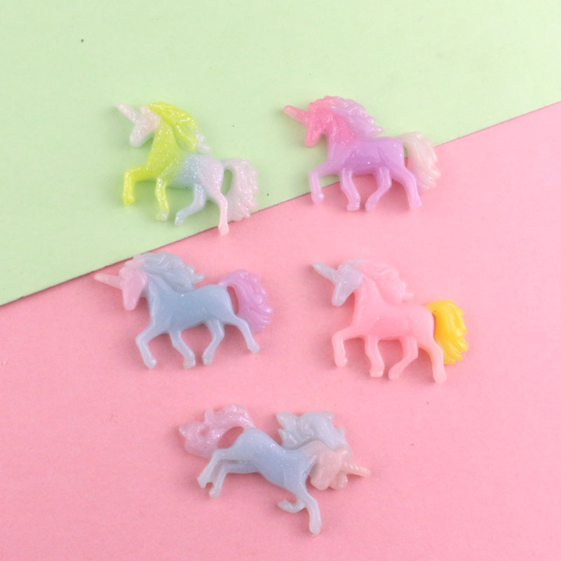 新しいdiy材料の漫画のアクセサリの部品の明るいピンクのグラデーションの色のユニコーンの馬の樹脂の部品