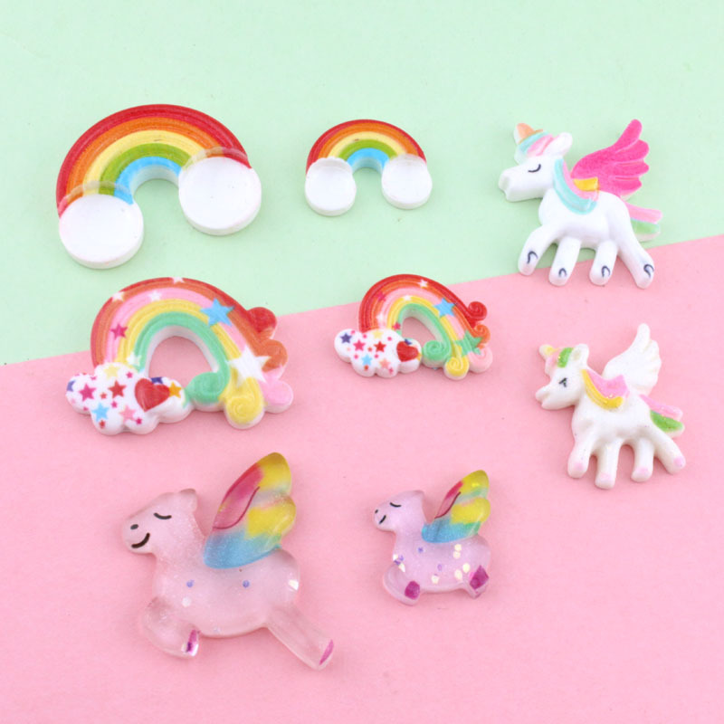 アニメ透明粉飛馬虹樹脂部品ネックレスブレスレットペンダント五角星虹ユニコーン部品