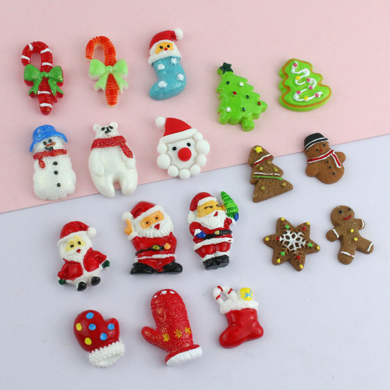 新しいクリスマスシリーズ雪だるまジンジャーブレッドマンサンタクロースクリスマスツリースノーフレーク杖ギフトボックス樹脂ジュエリーアクセサリー