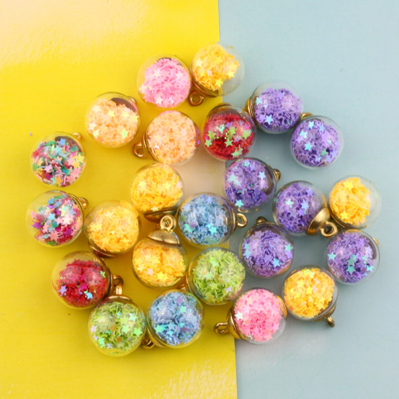 Diyアクセサリーカラー蛍光五芒星スパンコールガラスボールストラップキーアクセサリー
