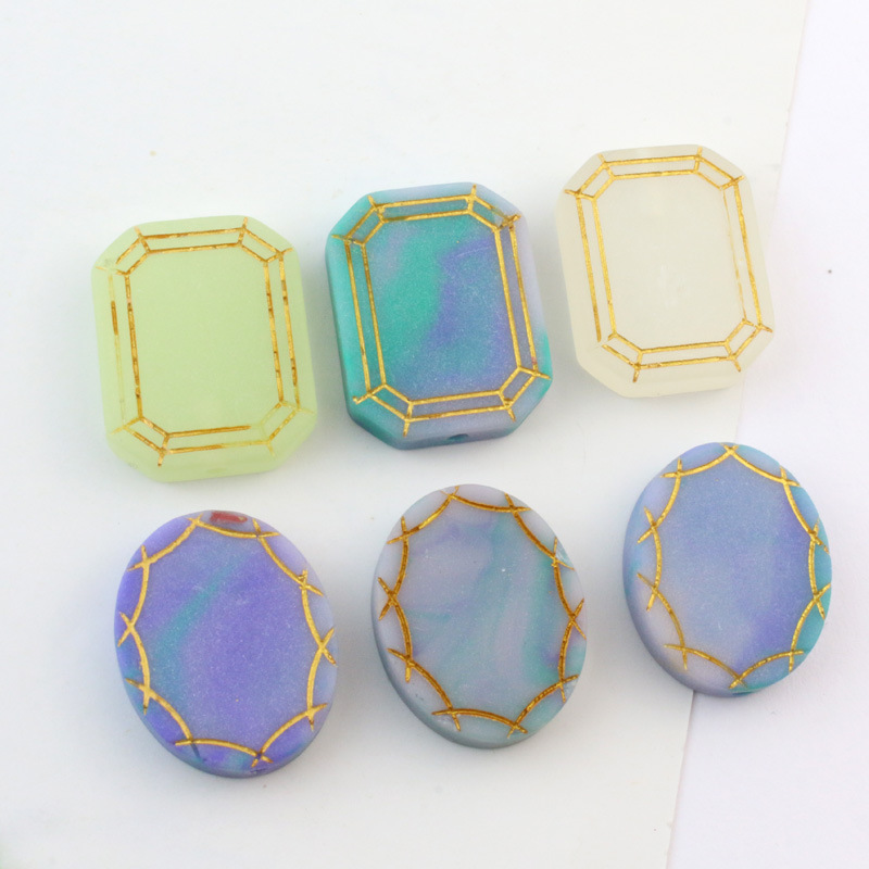 グラデーション金辺方形楕円幾何形状樹脂部品diy樹脂部品産地ソース
