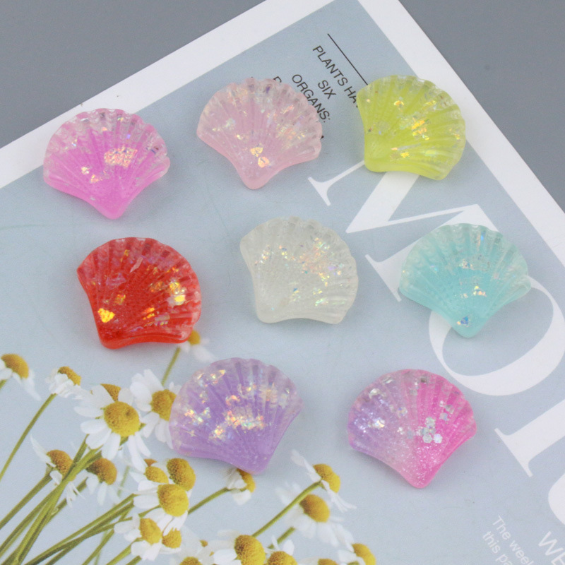Diy海洋シリーズは貝殻の扇形のカラー樹脂の部品のクリームの装飾の材料の現物の卸売りをまねます。