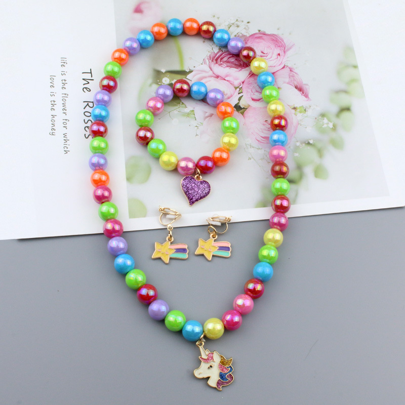 クロスボーダーの合金の油を垂らして虹のユニコーンのビーズの弾力性のネックレスのブレスレットの子供のスーツの現物をぶら下げます。