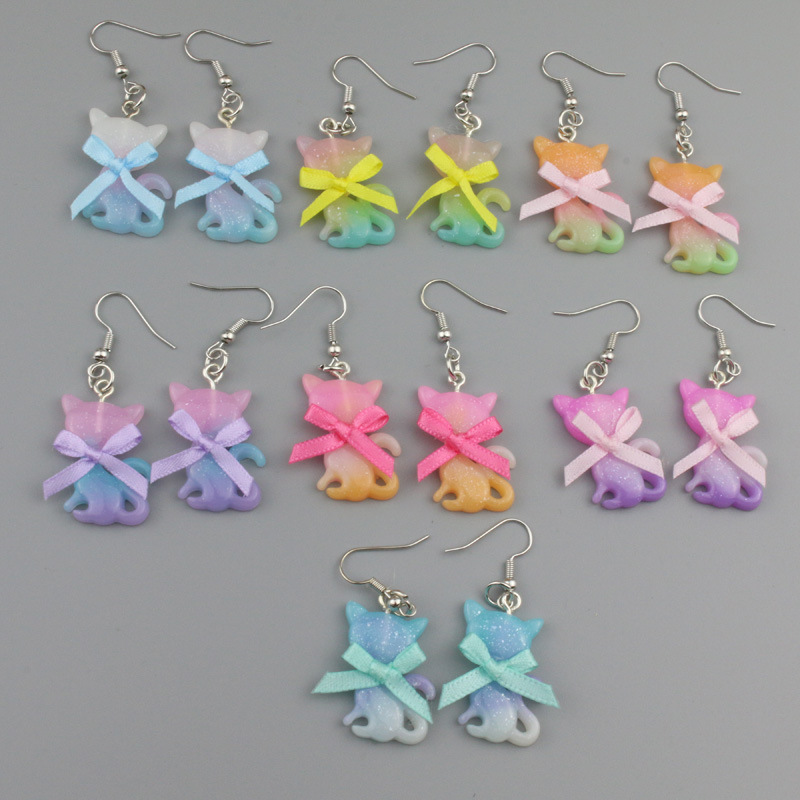 クロスボーダー手作り蝶結び猫グラデーションイヤリング樹脂グラデーション色子猫部品耳掛け耳飾り