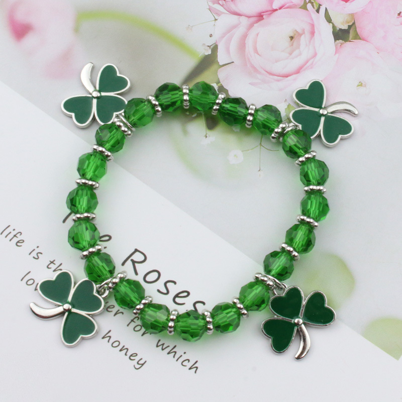 外国貿易の新型の緑色の透明な水晶の切断の玉は油のペンダントのクローバーの弾力性のブレスレットの現物の卸売りを垂らします。