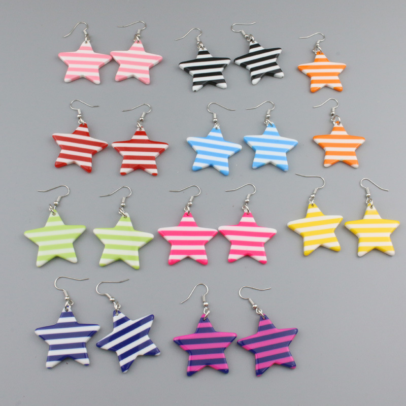 欧米の対外貿易の越境する商品のストライプの樹脂の五角星のイヤリングの個性は耳飾りの現物を誇張します。