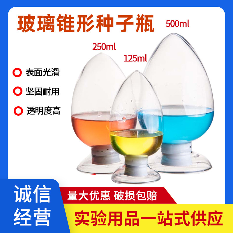 華鴎種子瓶展示瓶鶏心瓶125ml 250ml 500mlプラグ付き円錐形サンプル瓶