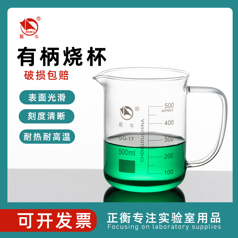 蜀牛取っ手付きガラスビーカー500 1000mlスケール計量カップ化学実験器材