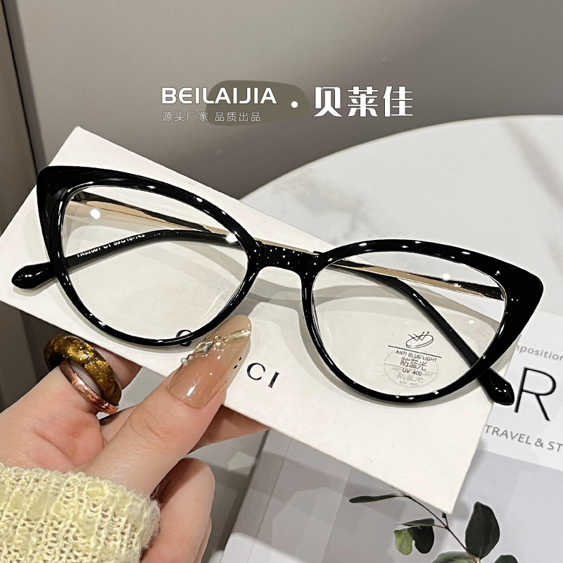 新品TRキャットアイメガネフレーム素顔神器ブルーライト防止メガネ度数韓国系高級感女性メガネフレーム