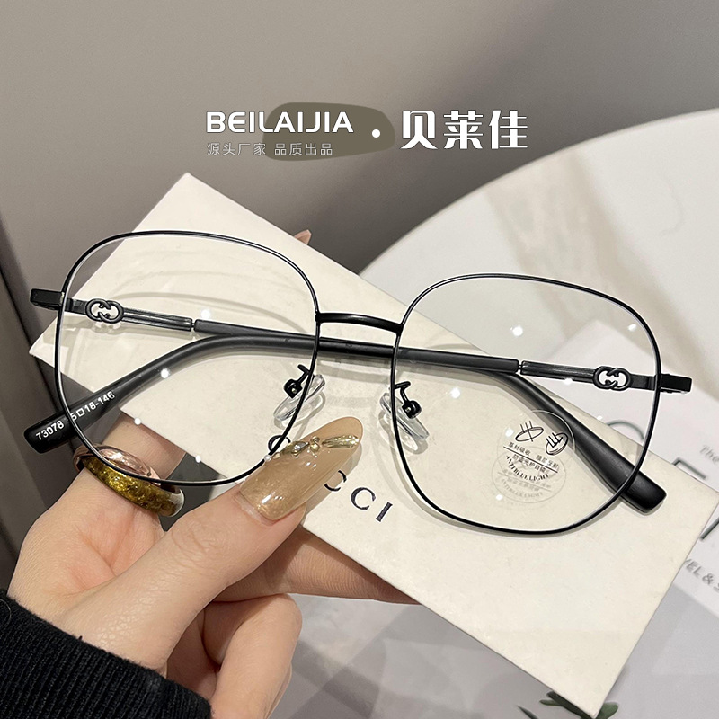 多角形金属大枠眼鏡男性高級感女性すっぴん神器は、ブルーライト防止金属眼鏡フレームを配合することができる
