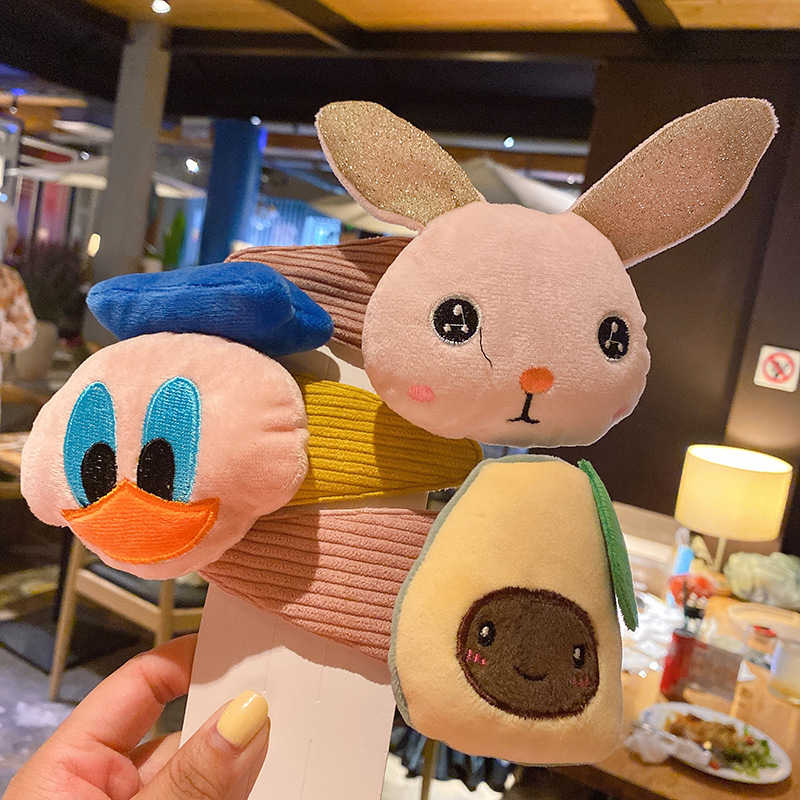 韓国の大きいサイズの恐竜は顔を洗って額のbbを挟んでかわいいぬいぐるみの唐老鴨の前髪を挟んで学生の少女の髪を挟んで飾ります。
