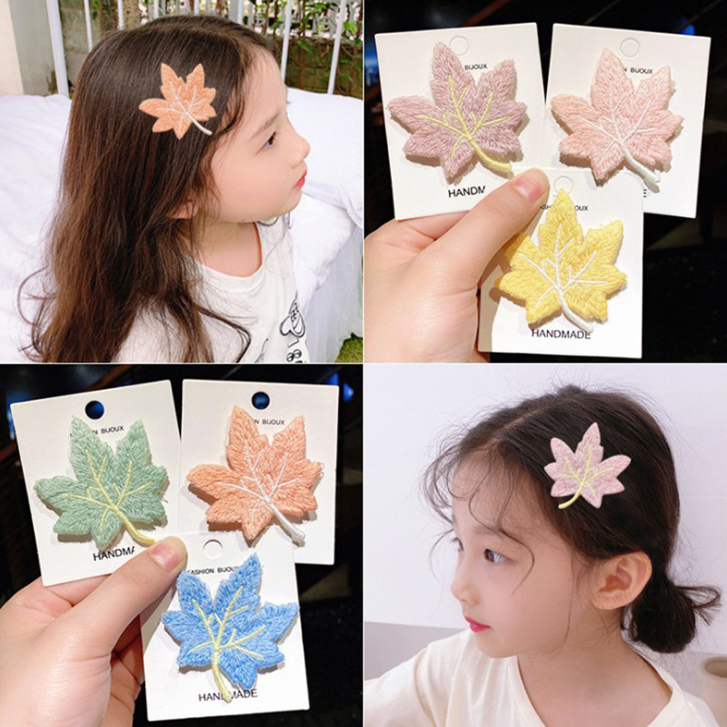 ネットの赤いカエデの葉の髪飾りは簡単です。髪にカードを挟んで前髪を飾ります。