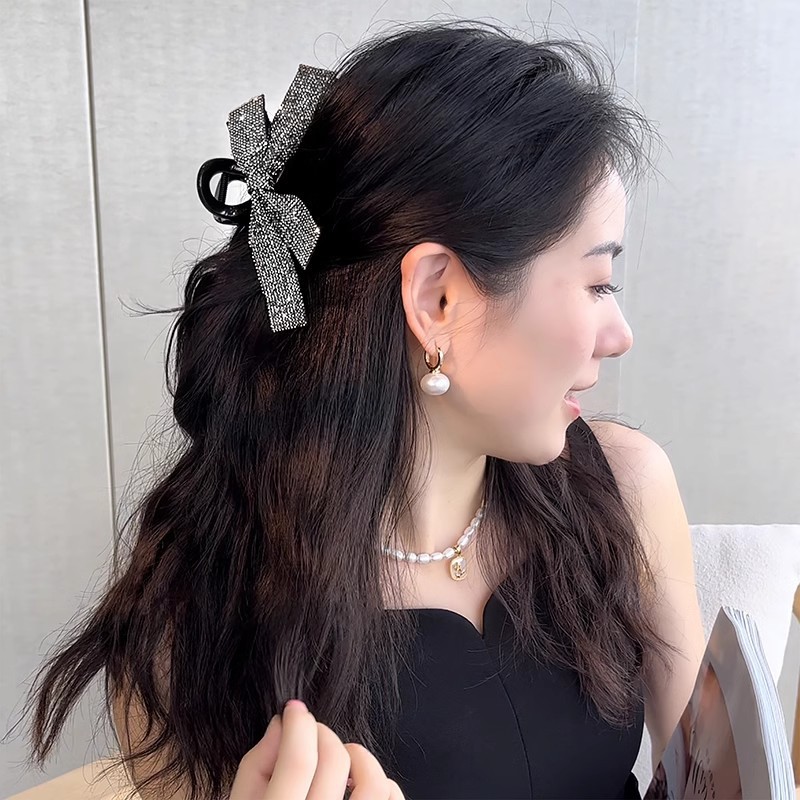 韓国の高級感の非対称性の蝶結びの大きいサイズのクリップの気質の女性の後頭部のヘアピンの髪の満ドリルのサメのクリップ