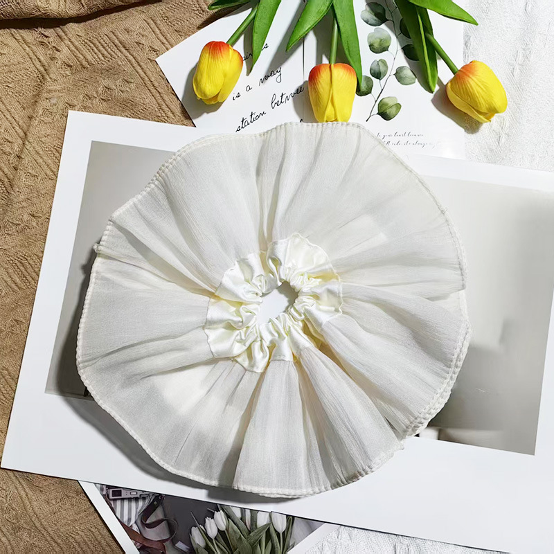 新型の超巨大シワ二重シュシュ大腸輪高級感白黒頭縄頭花百合髪飾りシンプルシュシュ