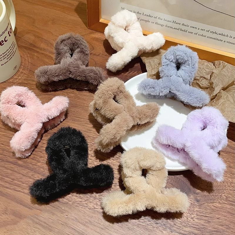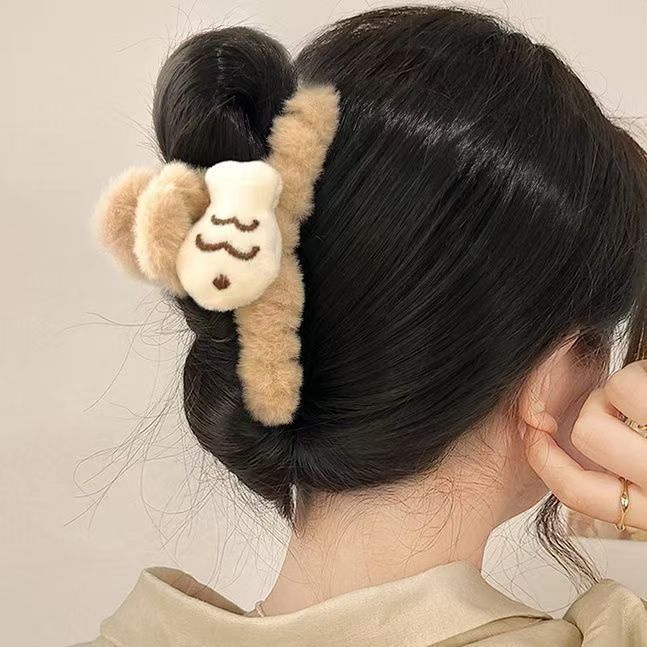 ぬいぐるみのクリップ女2024新高級感秋冬大盤髪サメのクリップ毛量が多い毛毛のクリップ髪飾り