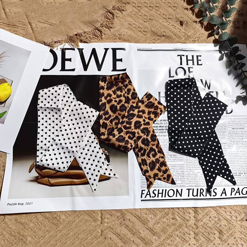 韓国系の長い黒い波点のシルクタオルは首のヘアバンドを結びます。