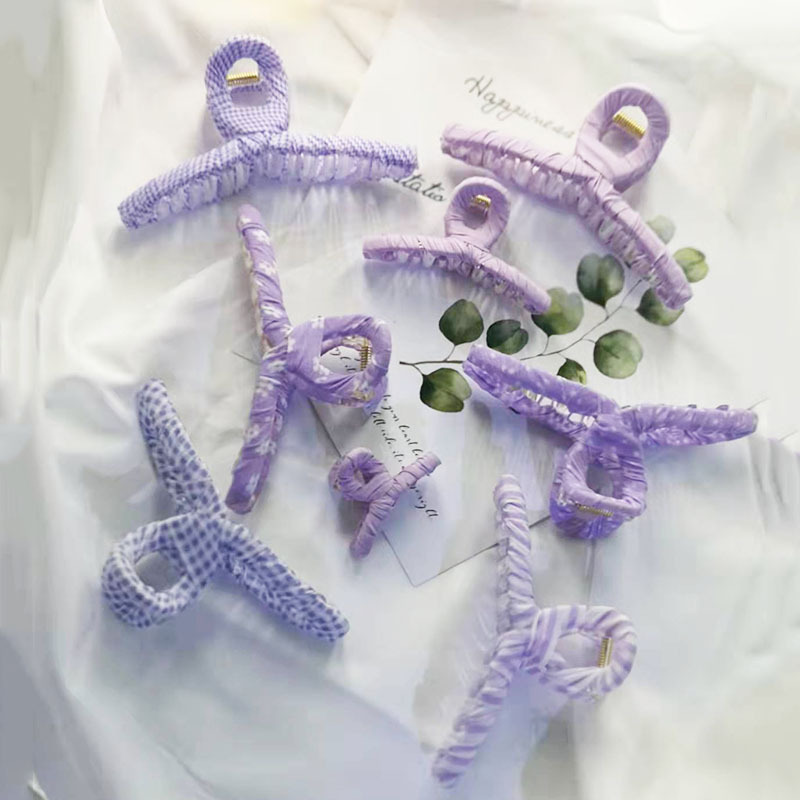 2023新型韓国版長春花藍布芸クリップ大ヘアピン紫シンプル後頭部サメクリップ