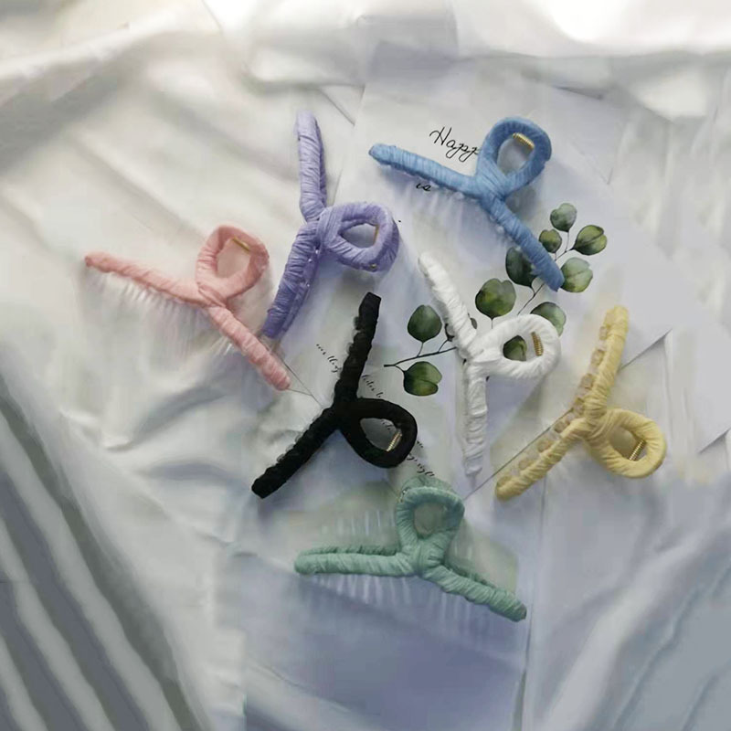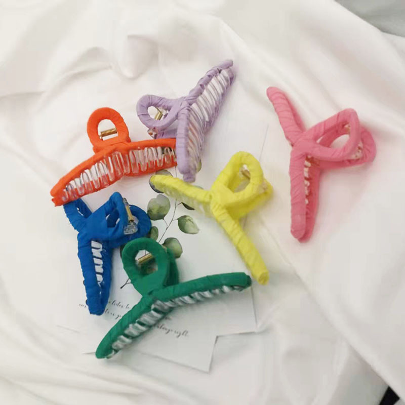 韓国版手作り布芸編みヘアクリップクロスボーダーファッション純色髪飾り大トランペットクロスサメクリップ少女クリップ
