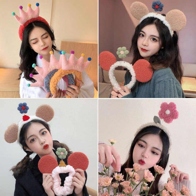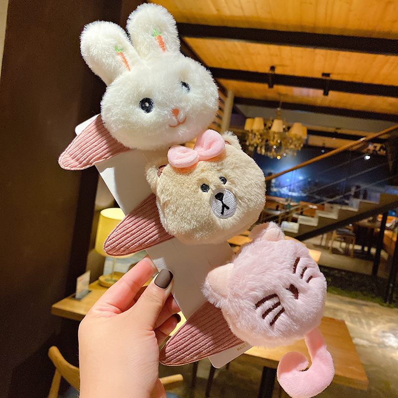 冬の新型韓国版かわいいウサギの立体ぬいぐるみのカチューシャの少女の顔を洗って髪を抑えます。
