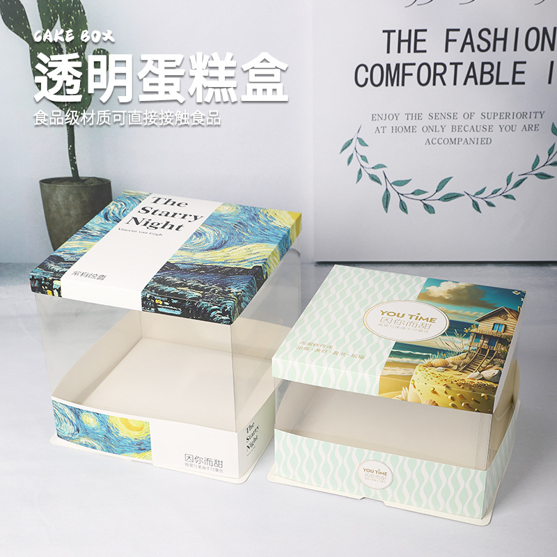 新商品ネット赤腰封刀叉箱透明誕生日ケーキ箱6六八/10/12インチ二重高包装箱