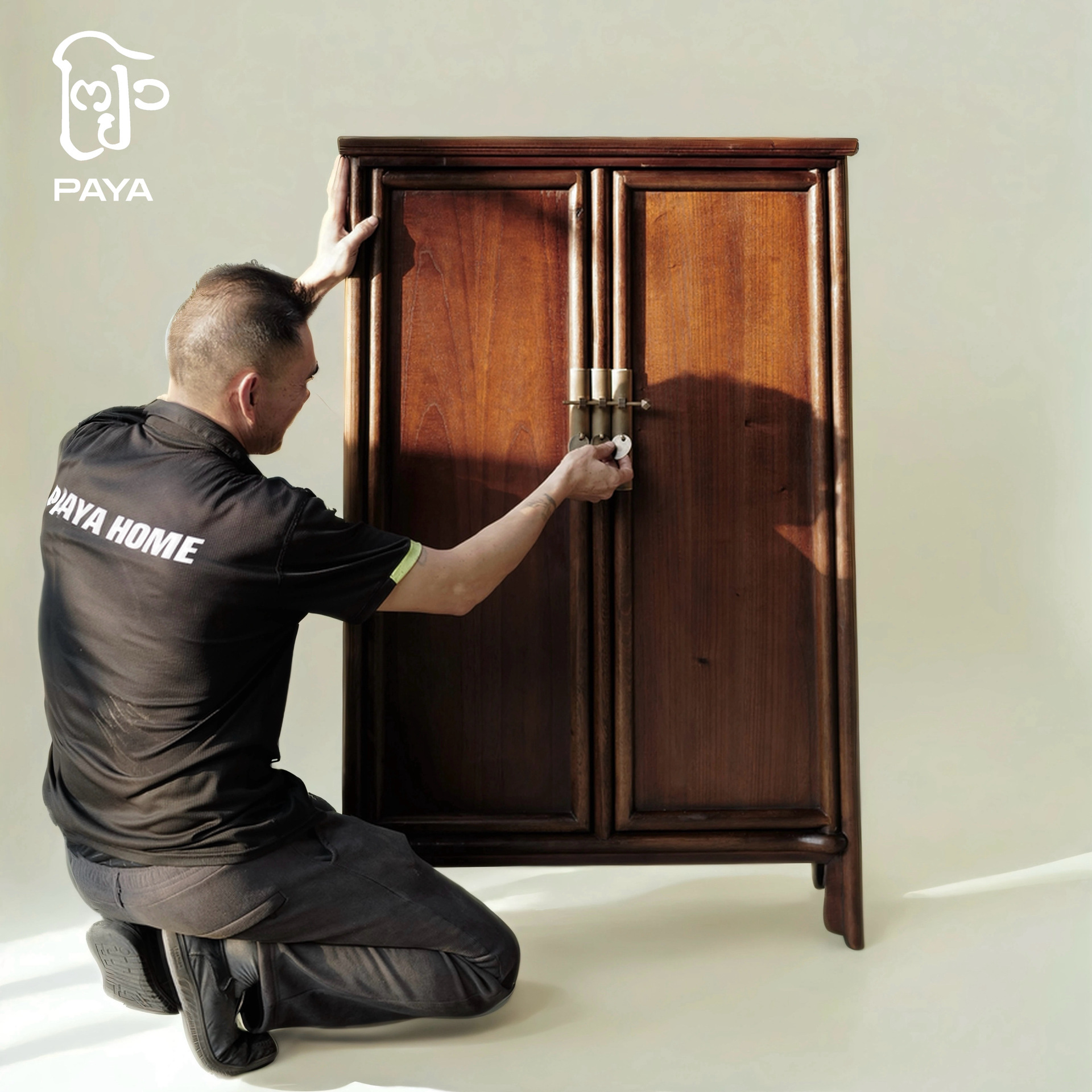 Wabi-sabi 風茶キャビネット 大容量無垢材茶キャビネット オシドリ木製キャビネットドア