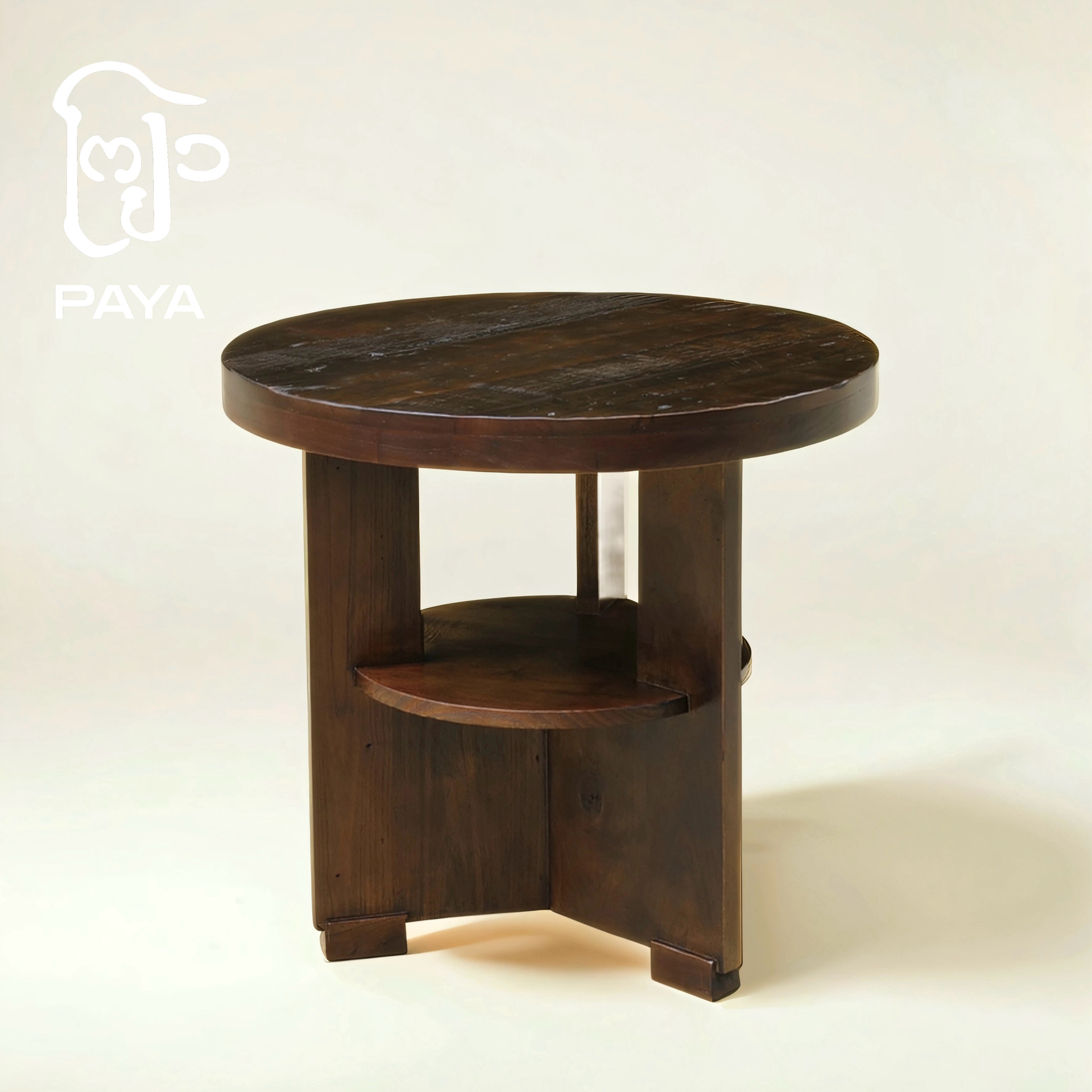 Chaji Feng 二層三脚ラウンドテーブル レトロスタイルラウンドテーブルサイドテーブル