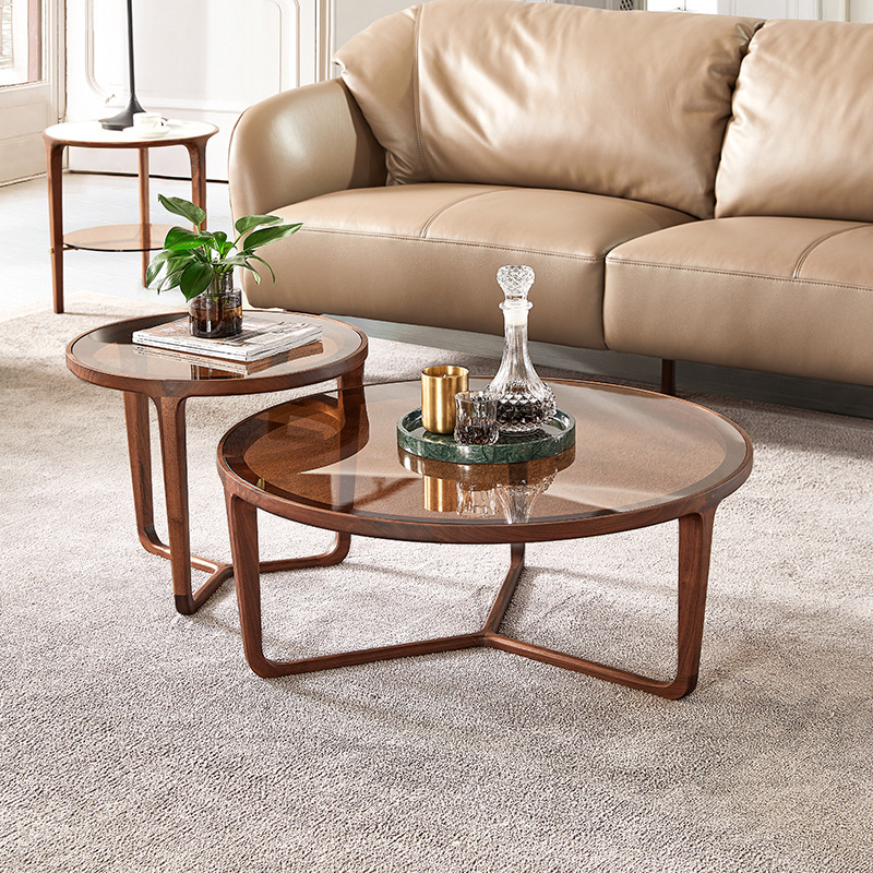 北欧実木茶卓ガラス仕上げ北米黒胡桃木円形茶台組み合わせリビングデザイナーコーヒーテーブル
