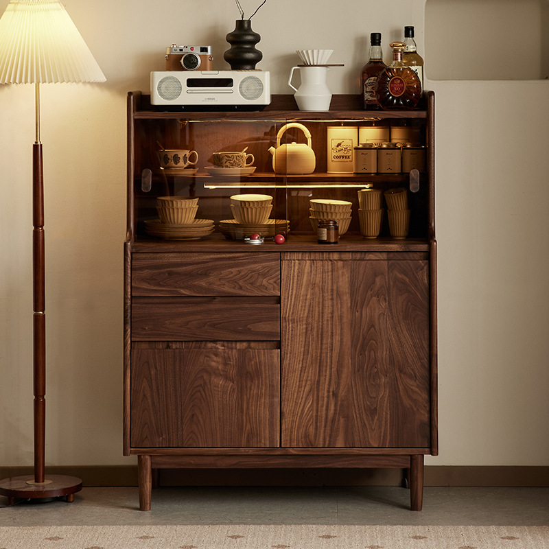 Yamoo北米黒胡桃木製サイドキャビネット北欧シンプルな実木壁に寄りかかってお茶を貯蔵するキャビネット家庭用ショーケース