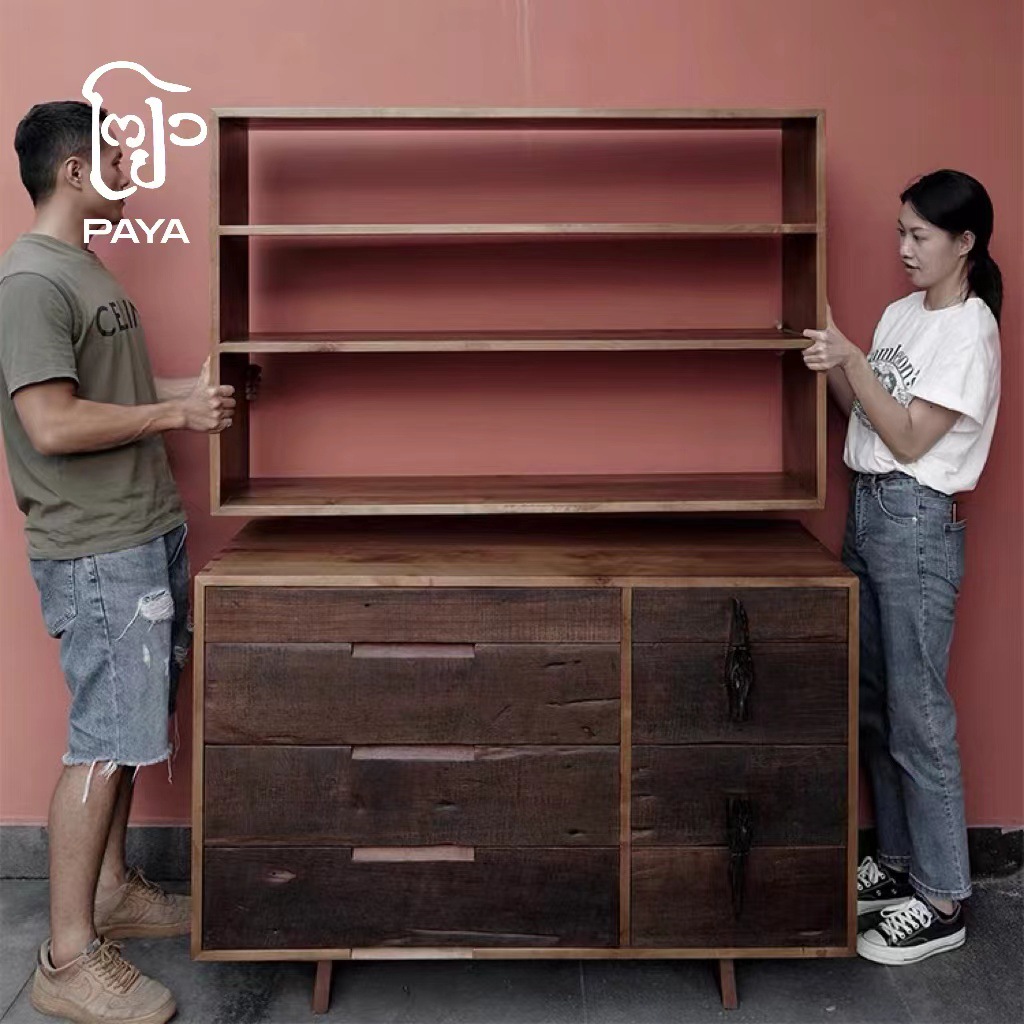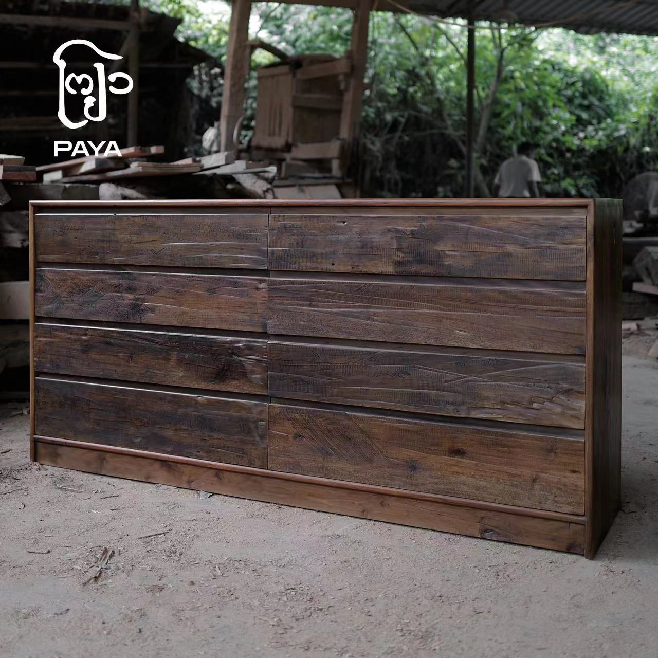 Wabi-sabi 風無垢材 8 引き出しキャビネット Wabi-sabi 風無垢材収納キャビネット オリジナルデザイン コーヒーテーブルキャビネット ホーム