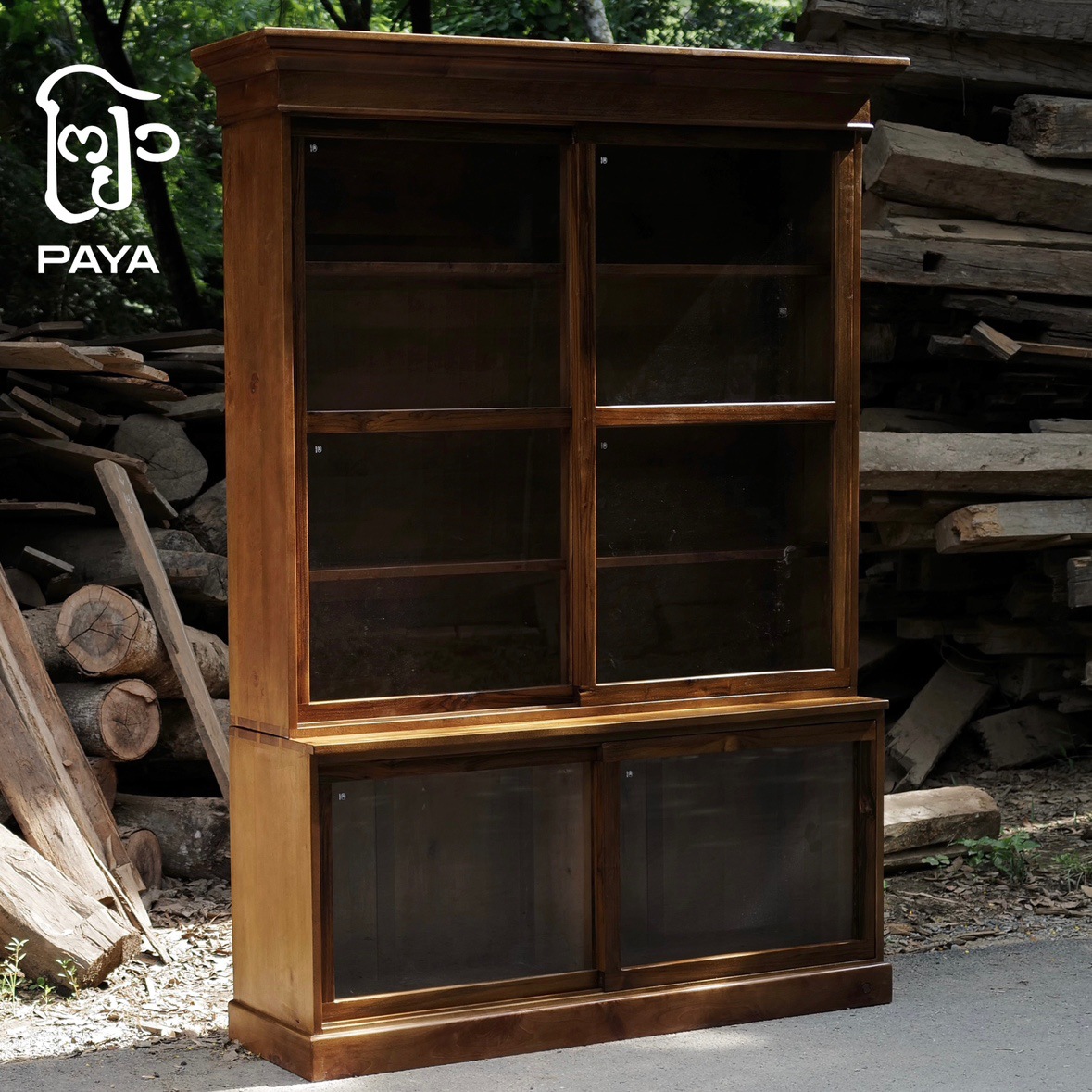 Chaji Feng ローマントップ一体型ガラスキャビネット レトロガラスディスプレイキャビネット