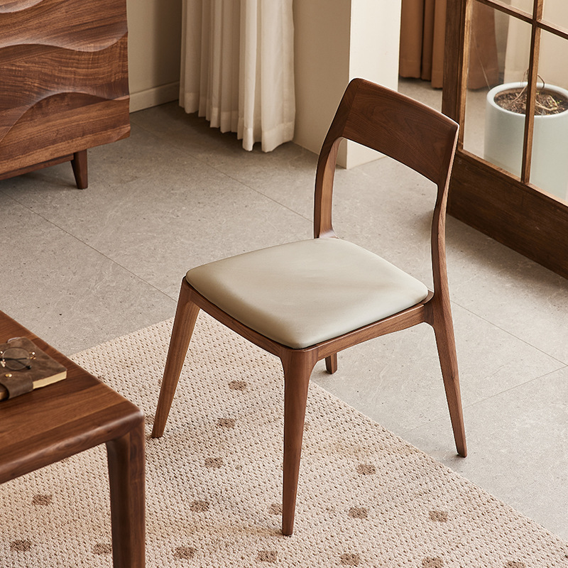 Yamoo北米黒胡桃木実木食堂椅子北欧シンプルソフト椅子家庭用レストランテーブル背もたれ椅子