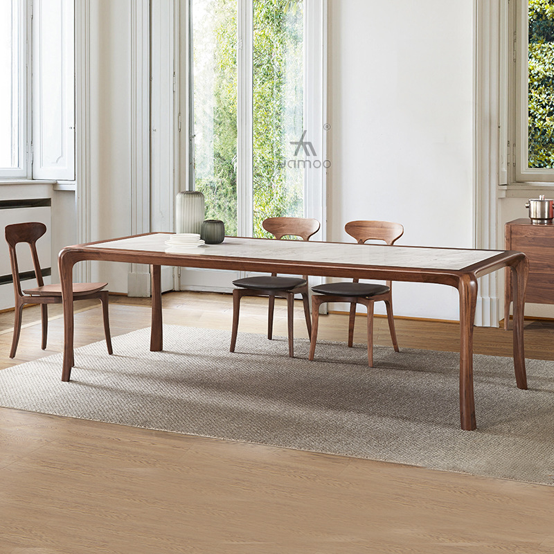 北米黒胡桃木食卓天然大理石食堂台大戸型別荘イタリアデザイナー軽贅沢食卓椅子