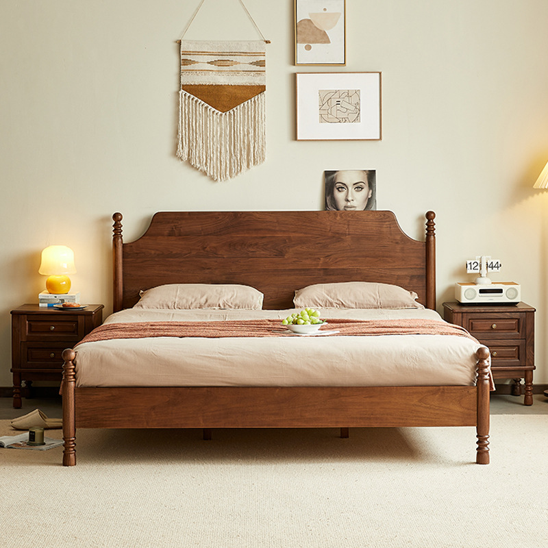 Yamoo北米黒胡桃木床北欧復古シンプル1.8メートルベッド主臥家庭用二人全実木結婚ベッド